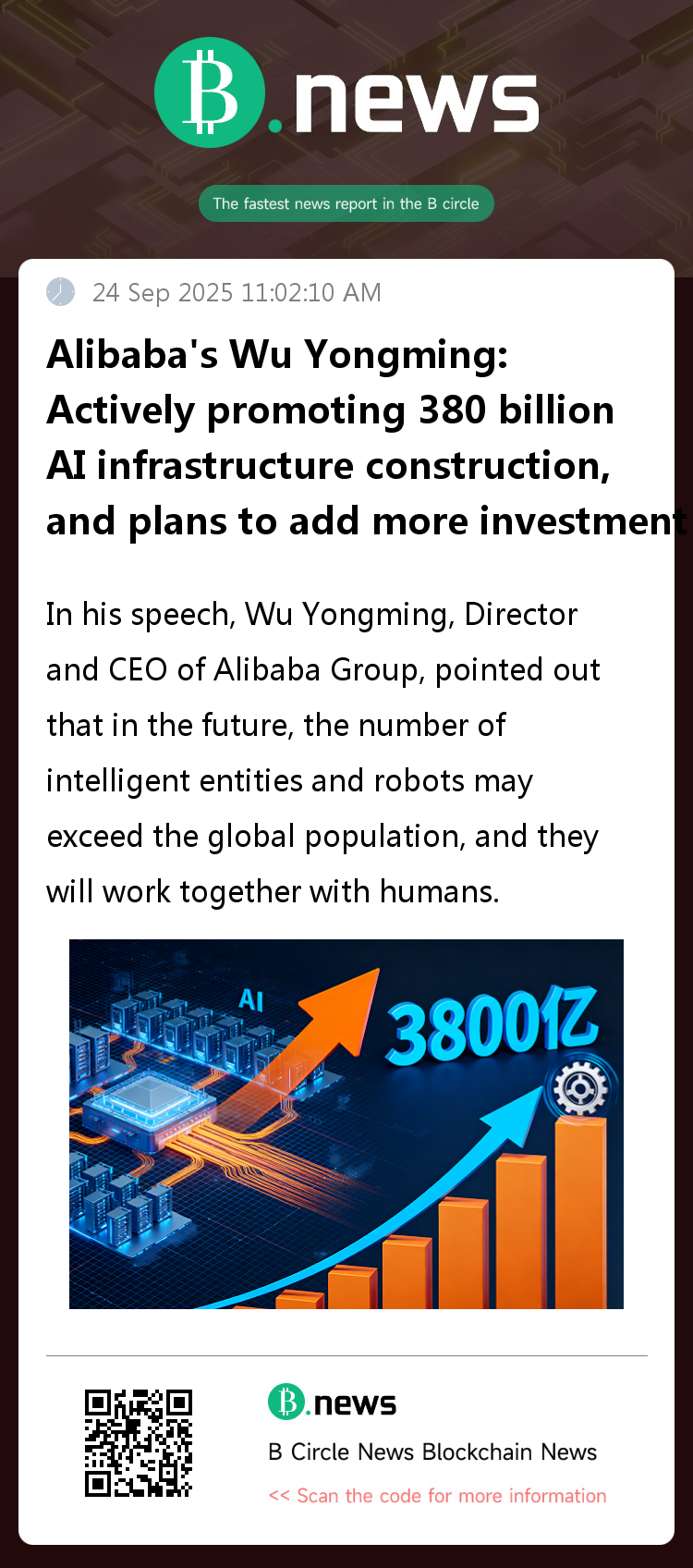 Alibaba is currently fully committed to building AI infrastructure with a total investment of 380 billion yuan, and plans to further expand this investment.