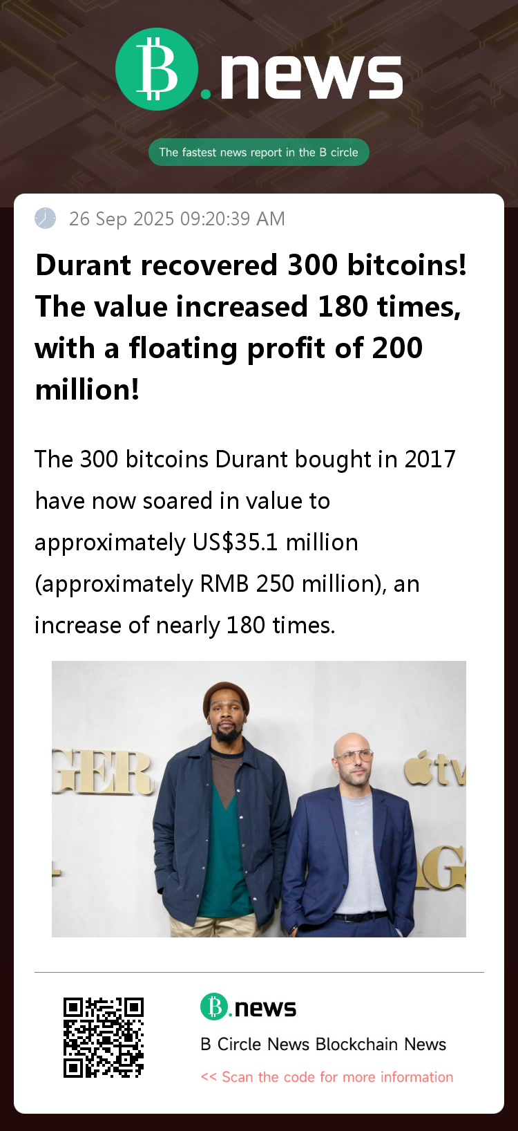 So far, Durant has not disclosed whether he will continue to hold or partially cash out the Bitcoin. But what is certain is that this investment story, which began at a birthday party nine years ago, has become another legendary story that intersects the worlds of crypto and sports.