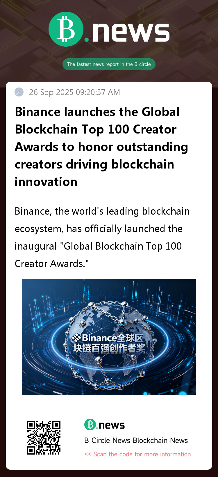 On September 25th, Binance, the world's leading blockchain ecosystem, announced the official launch of the inaugural "Global Blockchain Top 100 Creator Awards." This annual award recognizes creators and teams who have made outstanding contributions and profound impacts in areas such as blockchain education, content innovation, and community building.