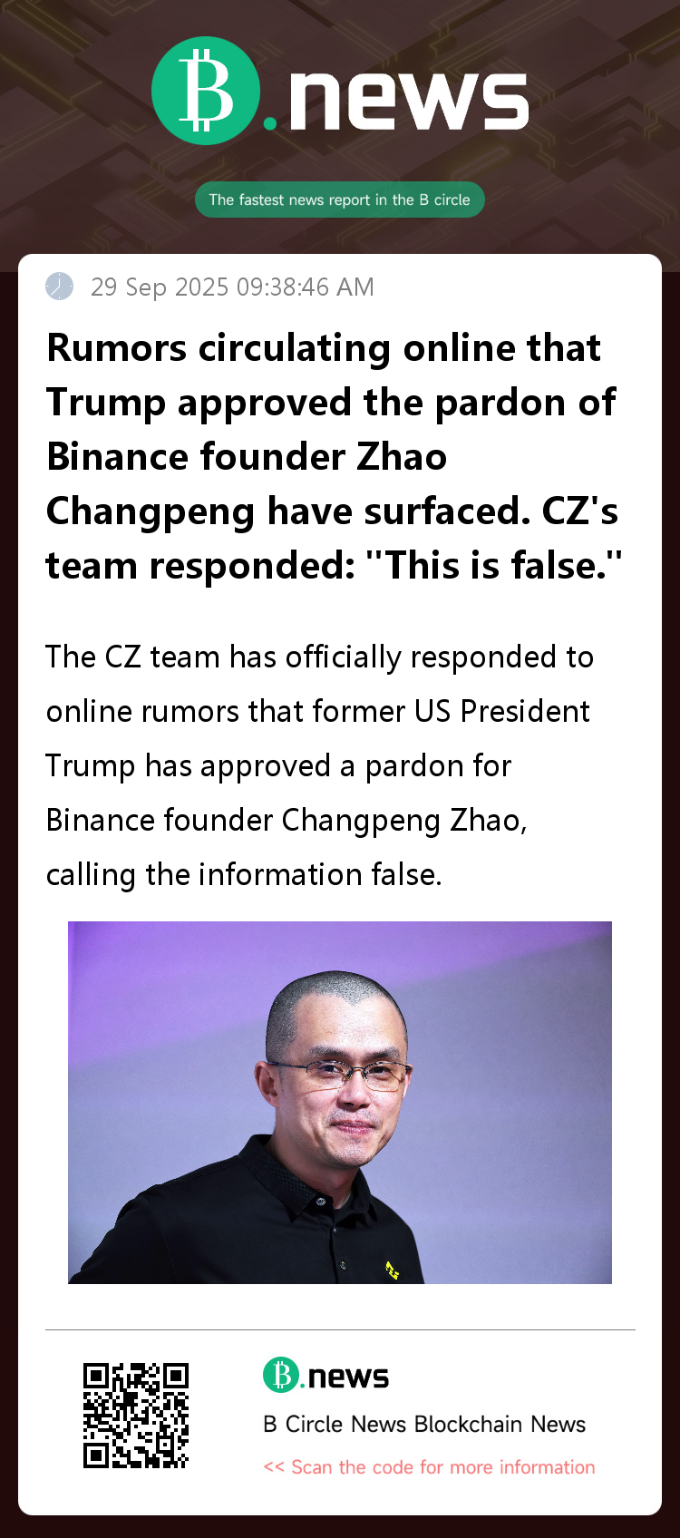 Latest Developments: Regarding this matter, the CZ team has responded to media outlets including Dongqu, clearly stating that the report is false and promising to update the public immediately if any further developments are made.