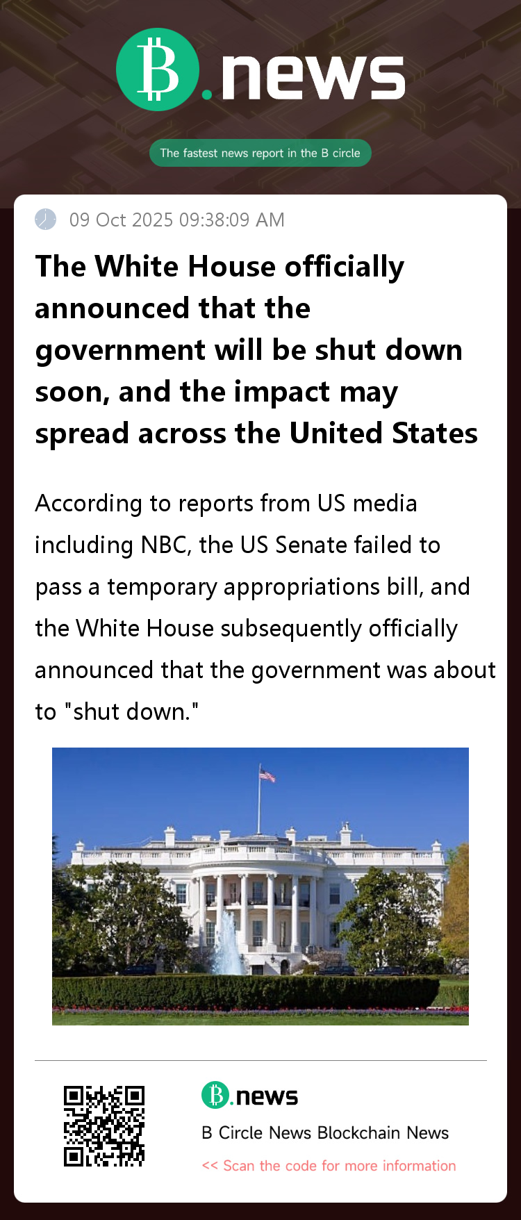 According to NBC and other US media, the US Senate failed to pass a temporary appropriations bill on the evening of September 30th, local time, and the White House subsequently officially announced an impending government shutdown. Reports indicate that federal agencies will face a shutdown, potentially affecting the entire country.