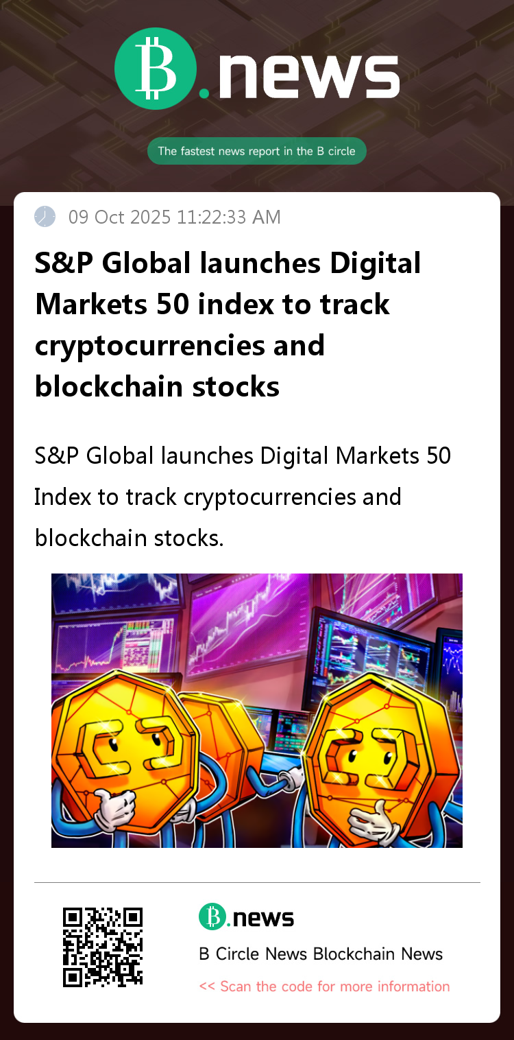 S&P announced Tuesday that the S&P Digital Markets 50 Index, created in partnership with tokenization firm Dinari, will include 15 cryptocurrencies with a market capitalization of at least $300 million and 35 publicly traded companies in the sector with a market capitalization of at least $100 million.
