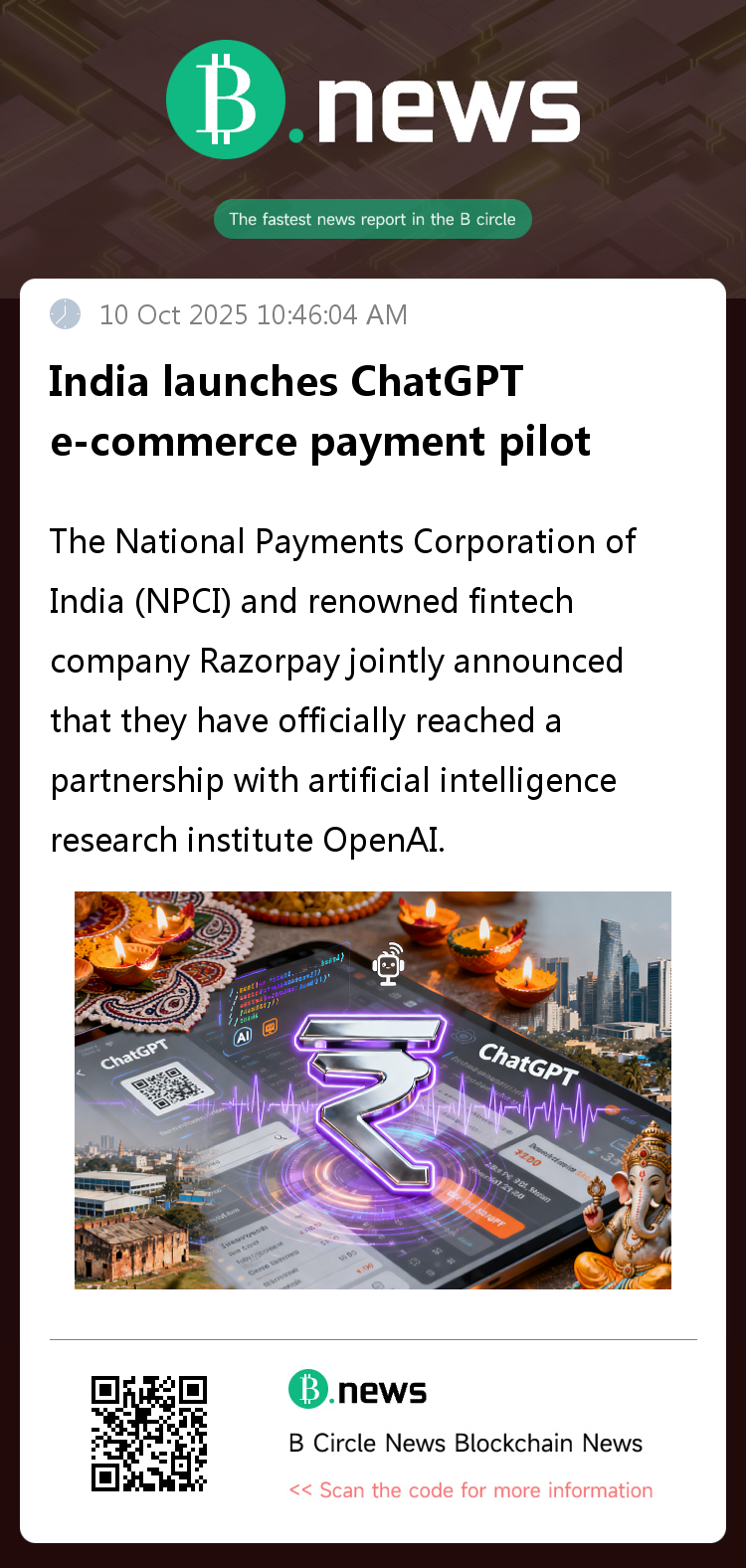 On October 10th, the National Payments Corporation of India (NPCI) and renowned fintech company Razorpay jointly announced a partnership with artificial intelligence research institute OpenAI to launch an AI-powered payment service on the ChatGPT platform.
