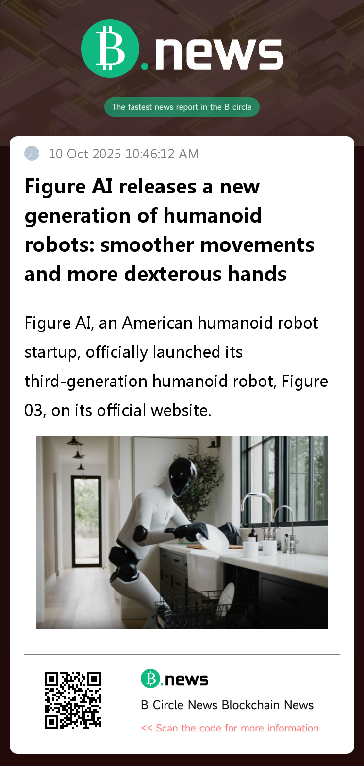Figure AI, an American humanoid robotics startup, officially launched its third-generation humanoid robot, Figure 03, on its official website on Thursday, October 9th. In a 6-minute-and-19-second demonstration video, Figure 03 seamlessly completed a series of daily tasks, including serving tea and water, interacting with pets, tidying the room, washing dishes, loading laundry, and other household tasks.
