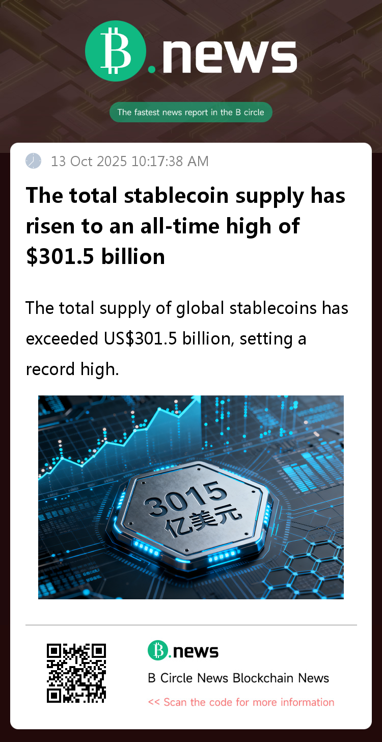 According to the latest data from Cointelegraph, a leading blockchain media outlet, the total global stablecoin supply has exceeded $301.5 billion, setting a new record high.