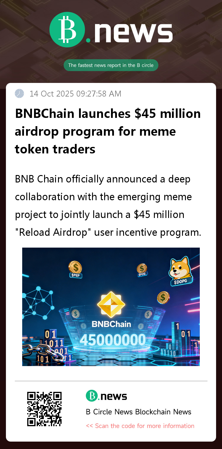 According to official disclosures, the first batch of airdrops will begin this week, with the entire distribution process expected to be completed by early November 2025. BNB Chain stated in the announcement that this move not only provides practical support for community users impacted by recent market volatility, but also aims to strengthen community activity and ecosystem resilience across the meme sector, while further incentivizing developers to continue building innovative decentralized applications on BNB Chain.