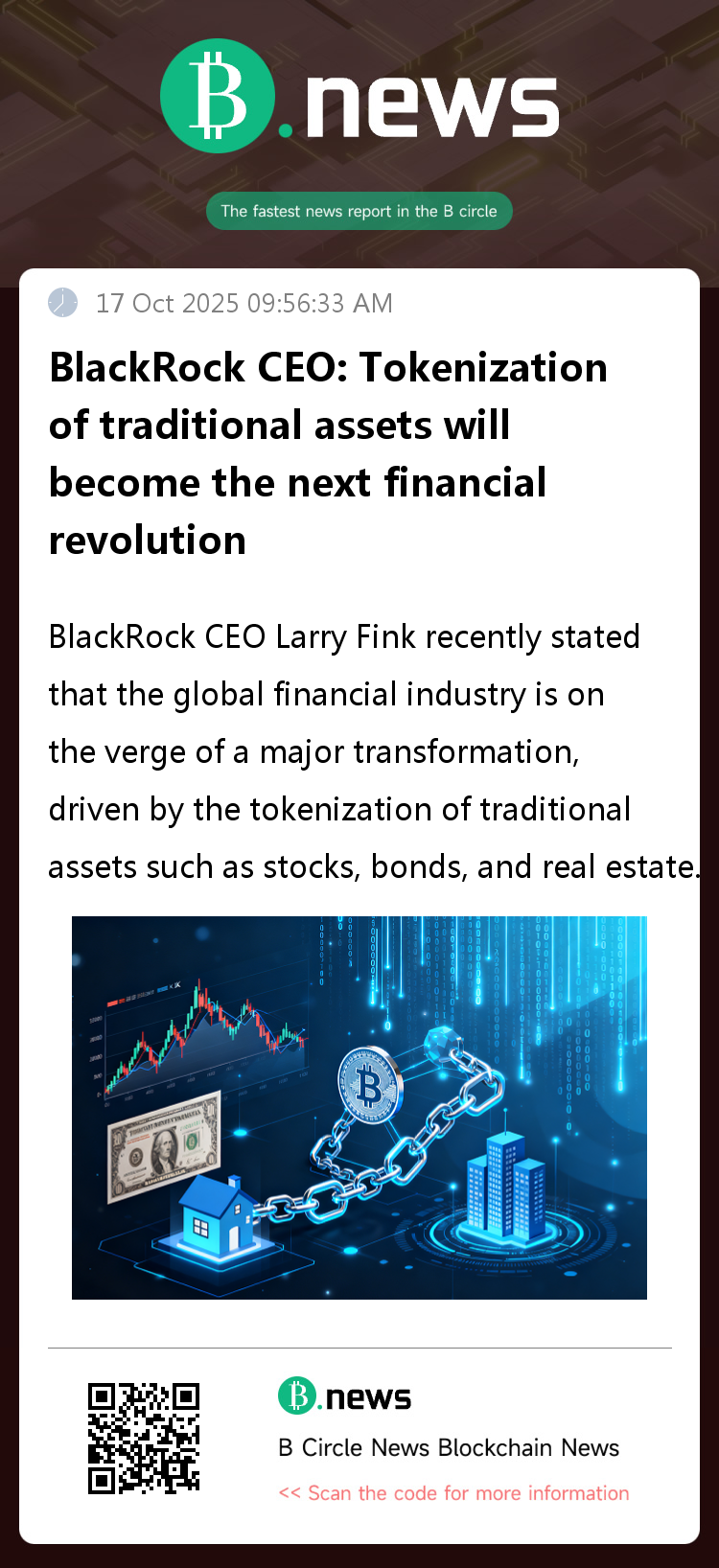 In an interview on October 14th, Fink stated that tokenization offers BlackRock an opportunity to attract more investors to mainstream financial markets through digital means. He estimated the total size of this "digital wallet" market to be approximately $4.1 trillion.