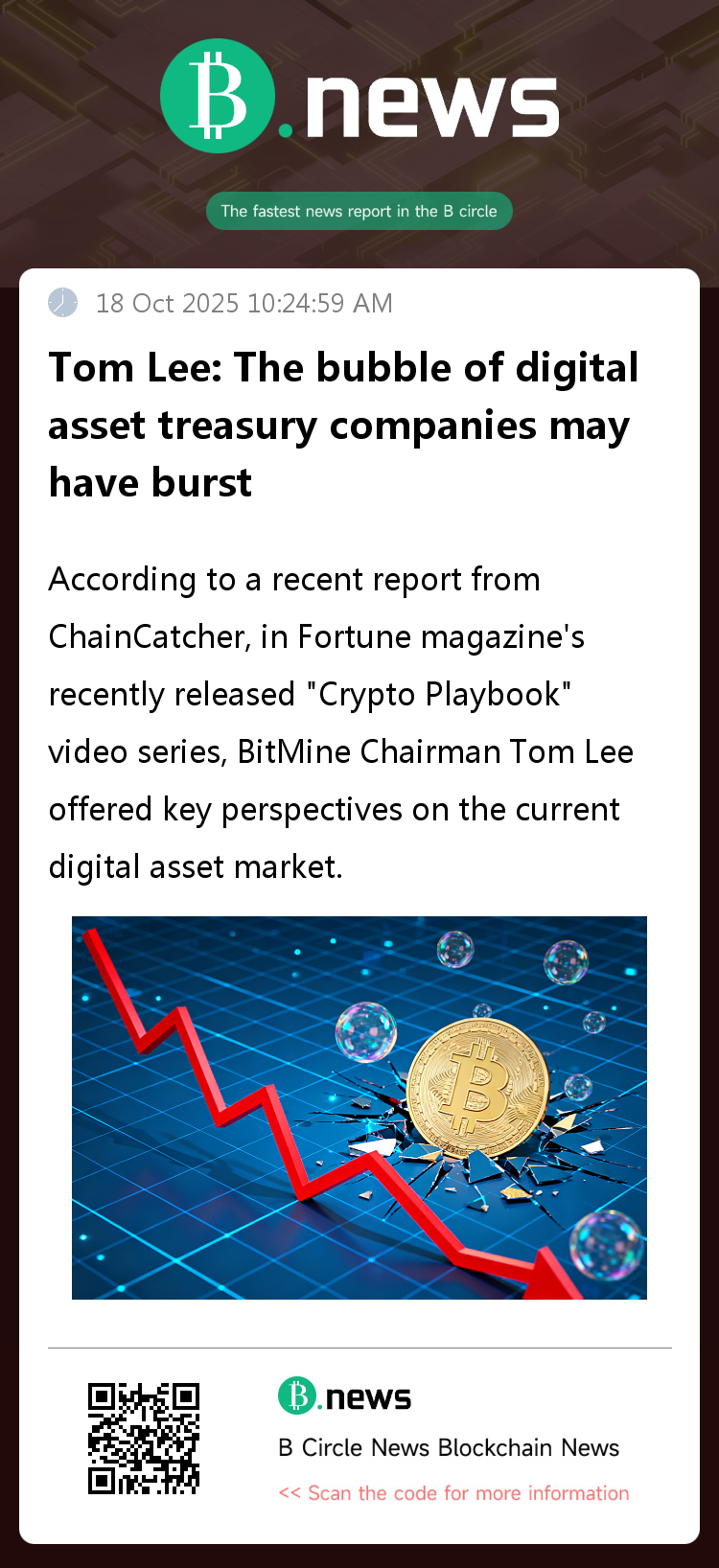 While discussing some digital asset treasury companies, Tom Lee pointed out a concerning phenomenon: as more and more of these companies enter the public markets, the stock prices of many of them have fallen below their corresponding net asset values, that is, below the total value of the crypto assets actually held by the companies. He bluntly asked, "If this is not a bubble burst, then what is?"