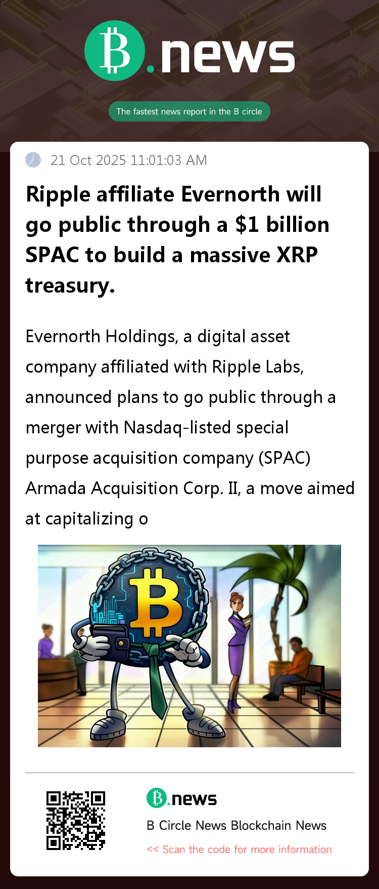 Evernorth Holdings, a digital asset company affiliated with Ripple Labs, announced plans to go public through a merger with Nasdaq-listed special purpose acquisition company (SPAC) Armada Acquisition Corp. II, a move aimed at capitalizing on growing institutional demand for publicly traded digital asset treasuries.
