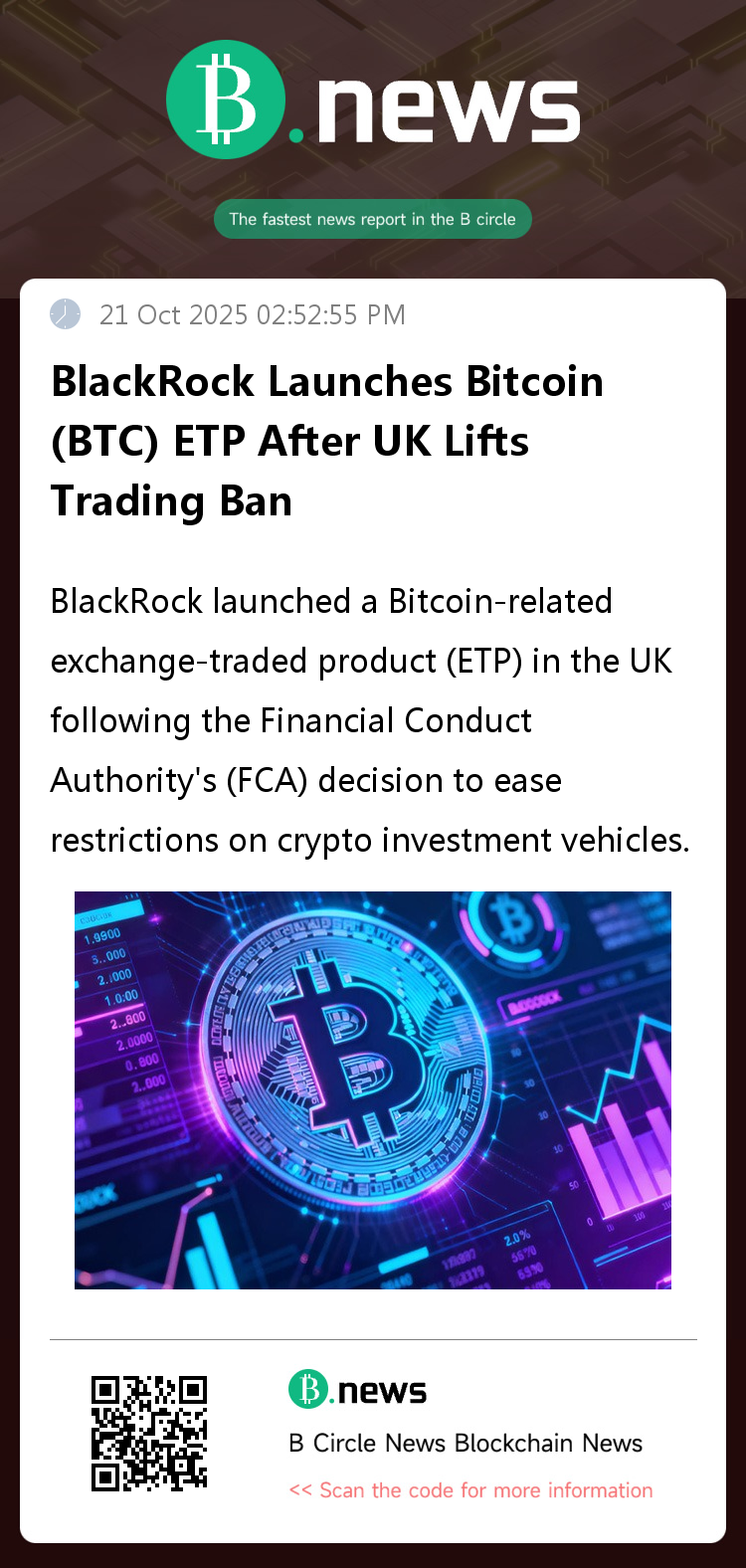 BlackRock launched a Bitcoin-related exchange-traded product (ETP) in the UK following the Financial Conduct Authority's (FCA) decision to ease restrictions on crypto investment vehicles.