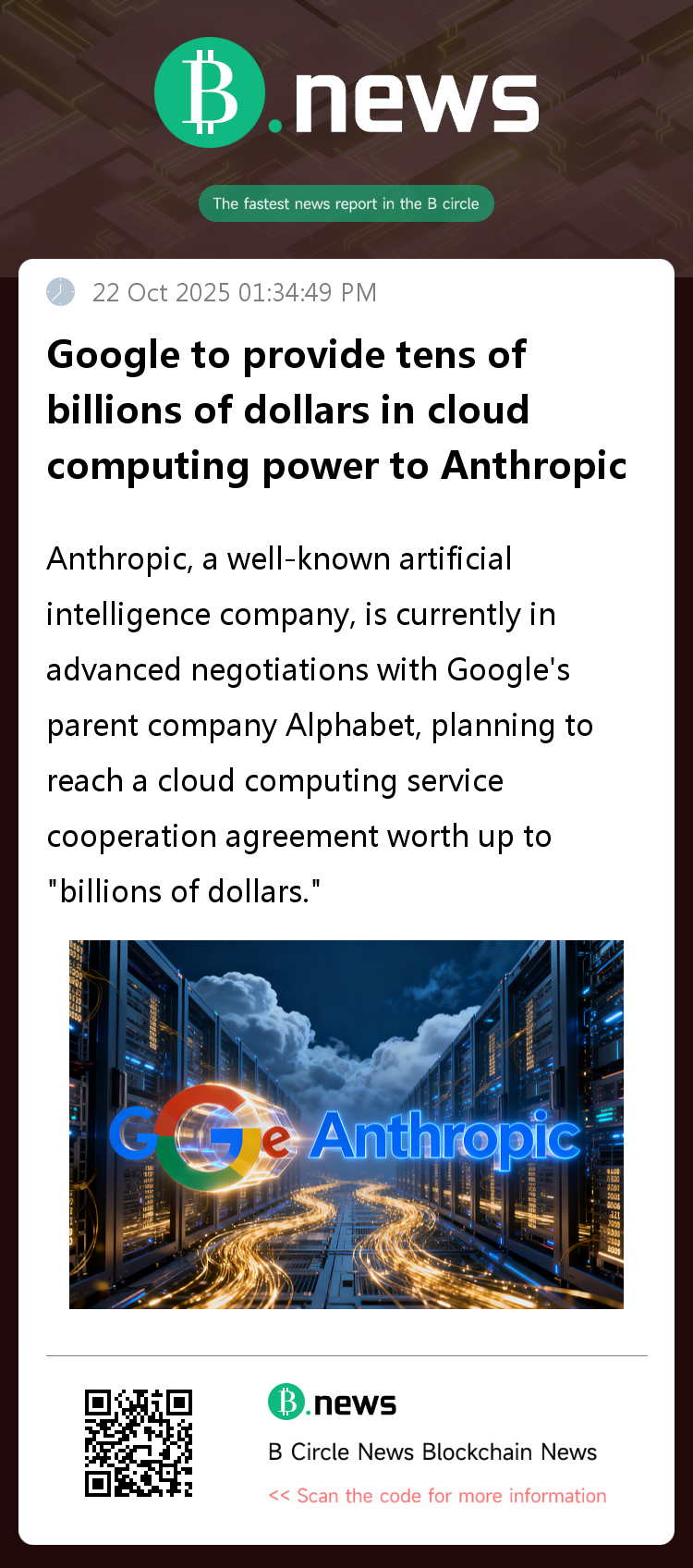 According to Bloomberg on October 22nd, renowned artificial intelligence company Anthropic is in advanced negotiations with Google's parent company, Alphabet, regarding a cloud computing services partnership valued at "multi-billion dollars."