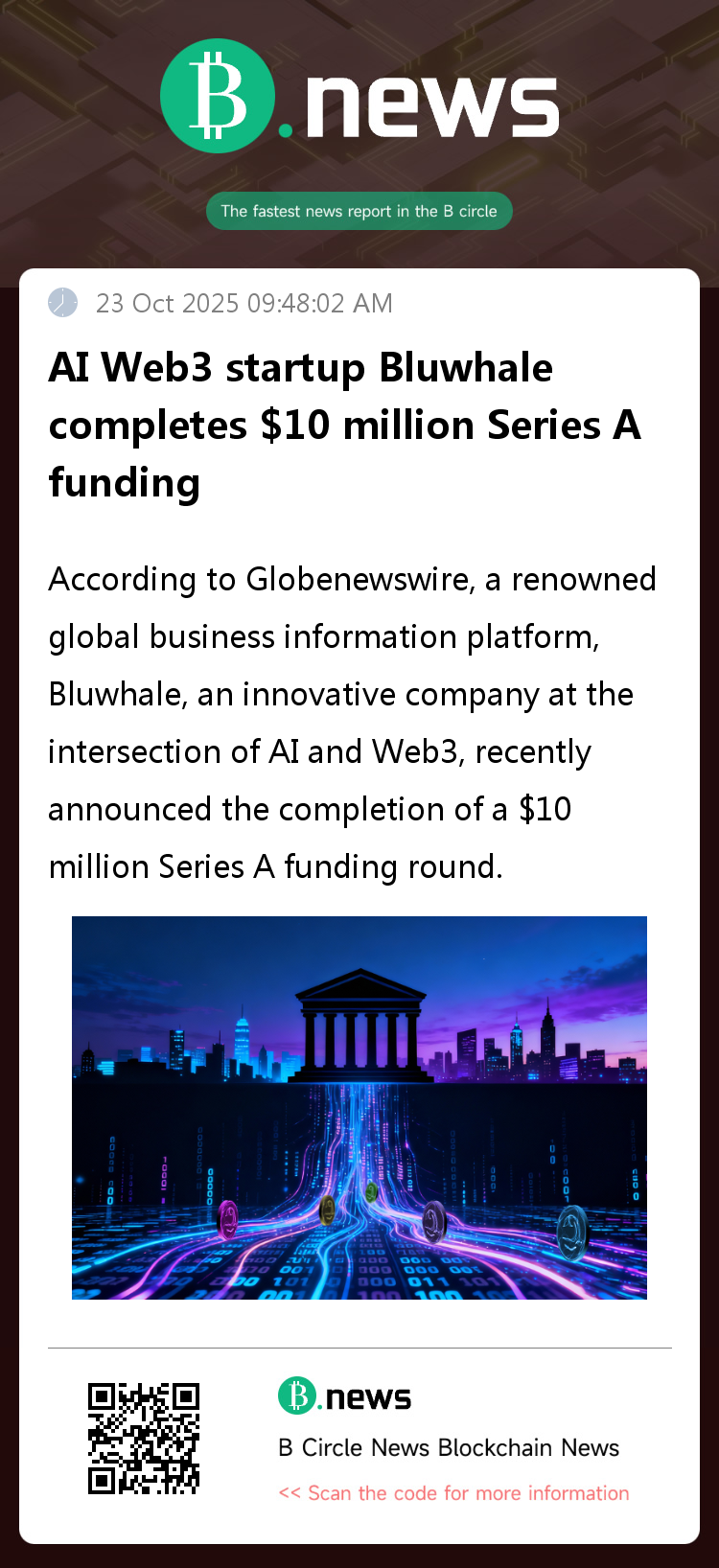According to Globenewswire, a renowned global business information platform, Bluwhale, an innovative company at the intersection of AI and Web3, recently announced the completion of a $10 million Series A funding round.