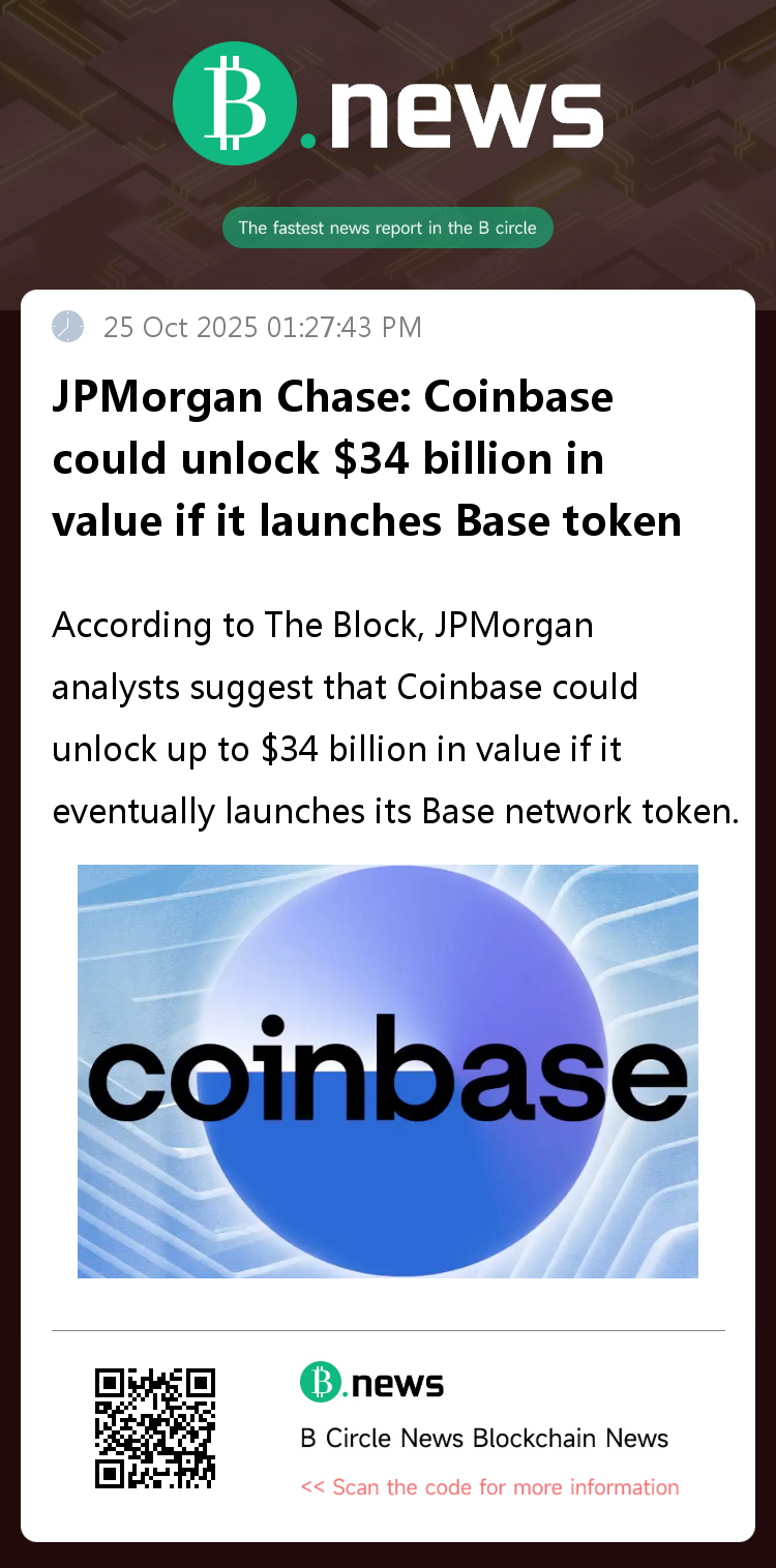According to The Block, JPMorgan analysts suggest that Coinbase could unlock up to $34 billion in value if it eventually launches its Base network token.