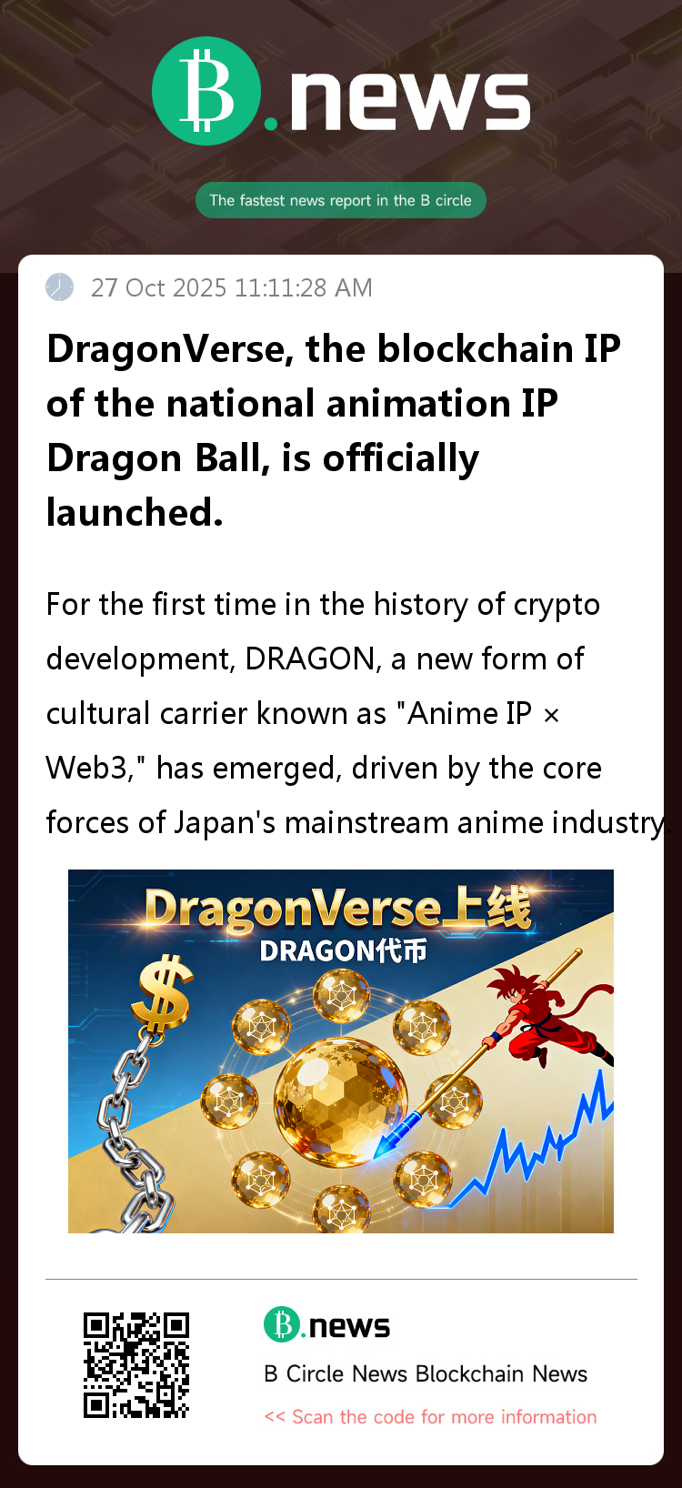 As the on-chain debut of the nationally recognized anime IP "Dragon Ball," DRAGON is the core token of DragonVerse, an on-chain IP RWA (Real World Asset) universe built on the "Dragon Ball" IP, and the first IP RWA project on BNB CHAIN. Notably, the project founder revealed on Bonk's Chinese Space last evening that the team has completed the acquisition of a second "Dragon Ball" IP and will announce it soon. DragonVerse's official announcement also mentioned plans for TCG (Trading Card Games) to further expand its content ecosystem.