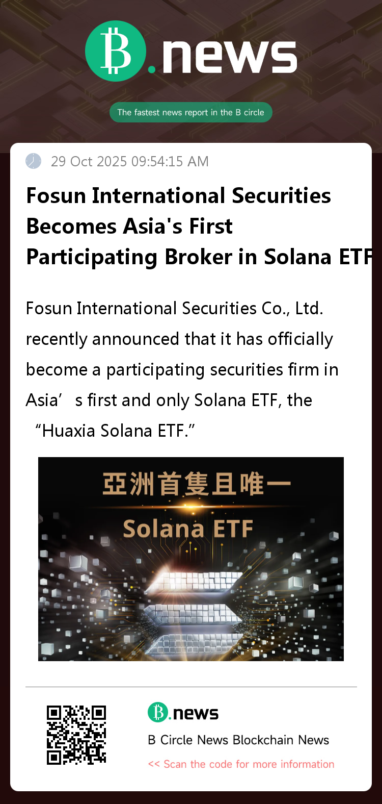 Fosun International Securities Co., Ltd., a subsidiary of Fosun Wealth Holdings Co., Ltd., recently announced that it has officially become a participating securities dealer for Asia's first and only Solana ETF, the "Huaxia Solana ETF" (stock code: 3460.HK).