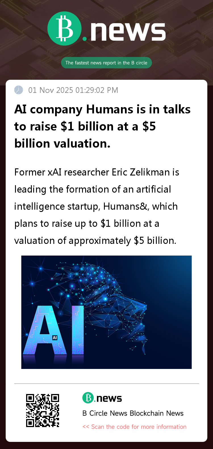 According to a recent Forbes report, former xAI researcher Eric Zelikman is leading the formation of an AI startup, Humans&, which has already assembled a team of senior researchers from top institutions such as Google, Meta, Anthropic, OpenAI, and DeepMind.