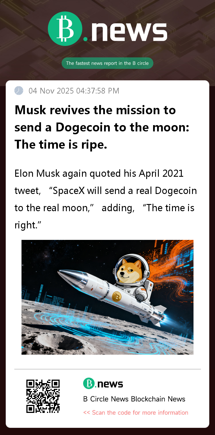 On November 4th, according to TheStreet, Elon Musk again referenced his April 2021 tweet—"SpaceX will send a real Dogecoin to a real moon"—and stated, "The time is right."