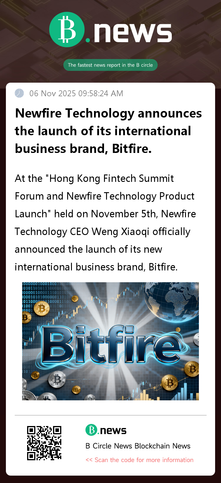 At the "Hong Kong Fintech Summit and Newfire Technology Product Launch" held on November 5th, Weng Xiaoqi, Executive Director and CEO of Newfire Technology, officially announced the launch of its new international business brand – Bitfire, and unveiled its global strategic layout.
