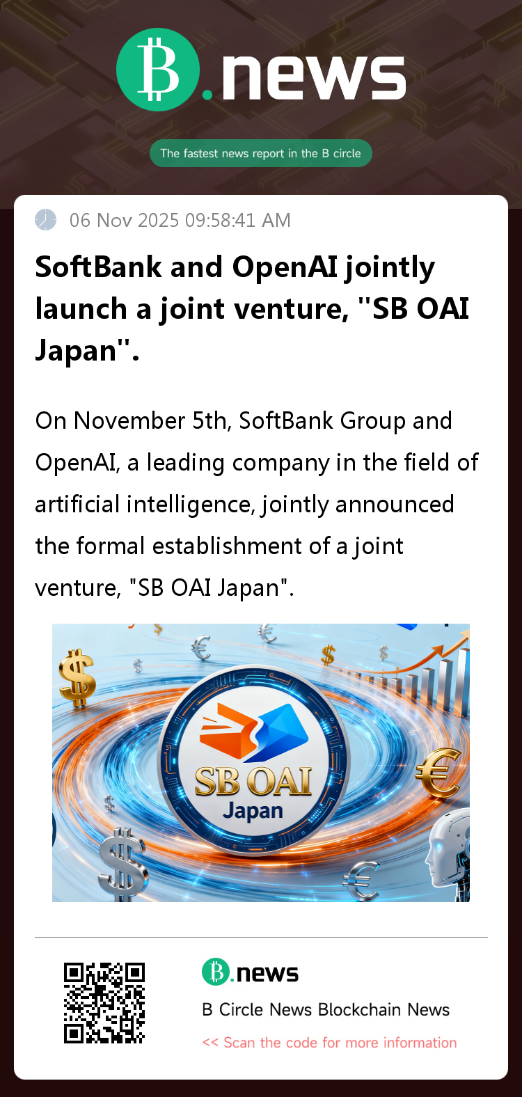 On November 5th, SoftBank Group and OpenAI, a leading company in the field of artificial intelligence, jointly announced the formal establishment of a joint venture, "SB OAI Japan."