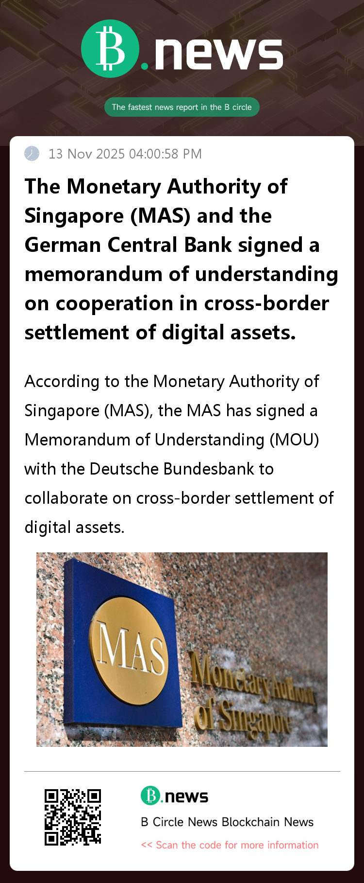 According to the Monetary Authority of Singapore (MAS), the MAS has signed a Memorandum of Understanding (MOU) with the Deutsche Bundesbank to collaborate on cross-border settlement of digital assets.
