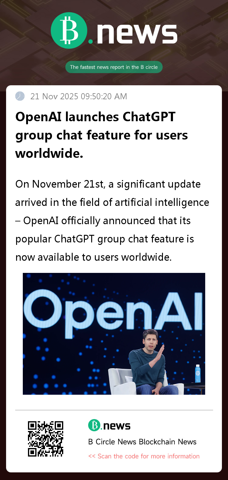 On November 21st, a significant update arrived in the field of artificial intelligence – OpenAI officially announced that its popular ChatGPT group chat feature is now available to users worldwide.