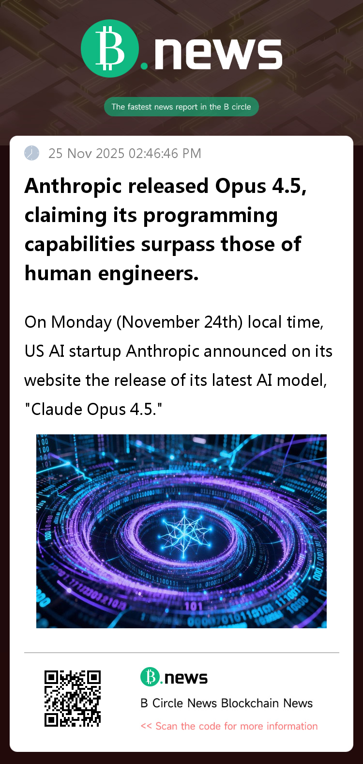 On Monday (November 24th) local time, US AI startup Anthropic announced on its website the release of its latest AI model, "Claude Opus 4.5."