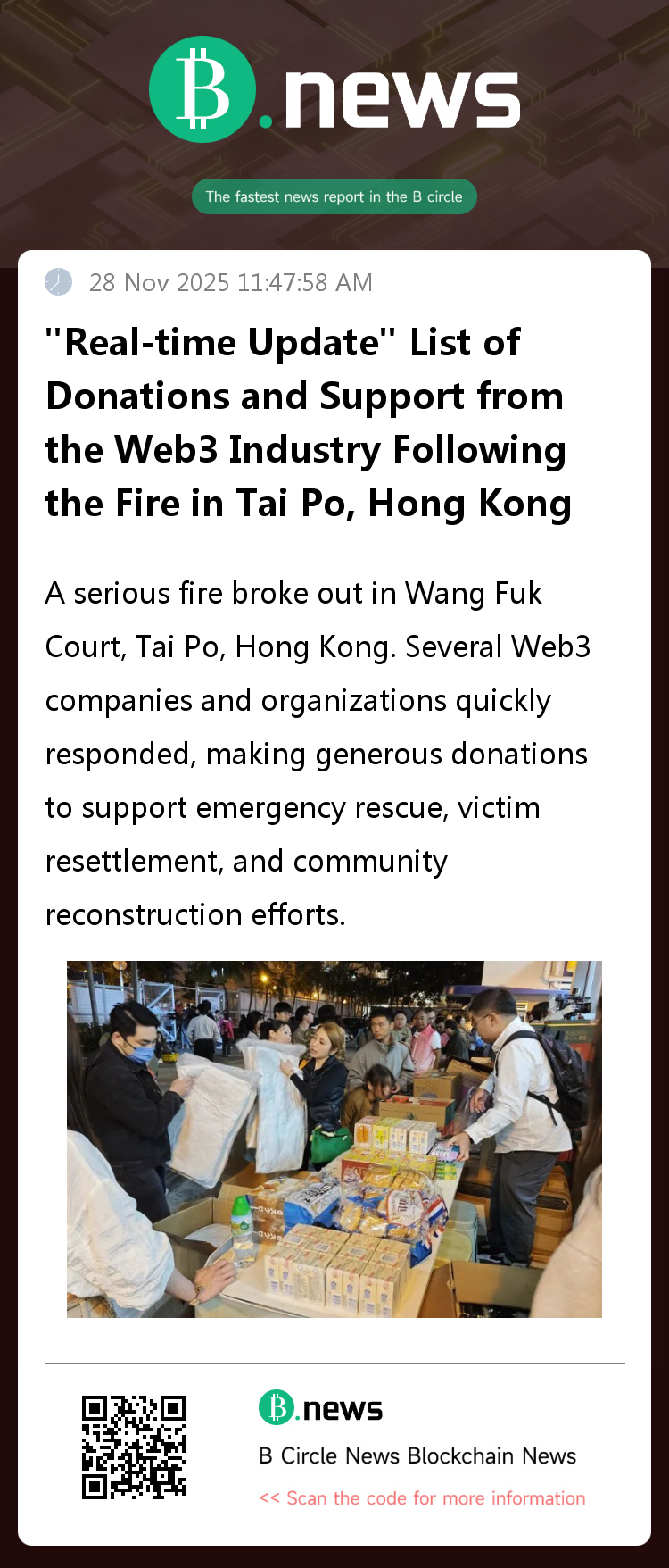 Meanwhile, several Web3 companies and organizations quickly responded, making generous donations to support emergency rescue, victim resettlement, and community rebuilding efforts.