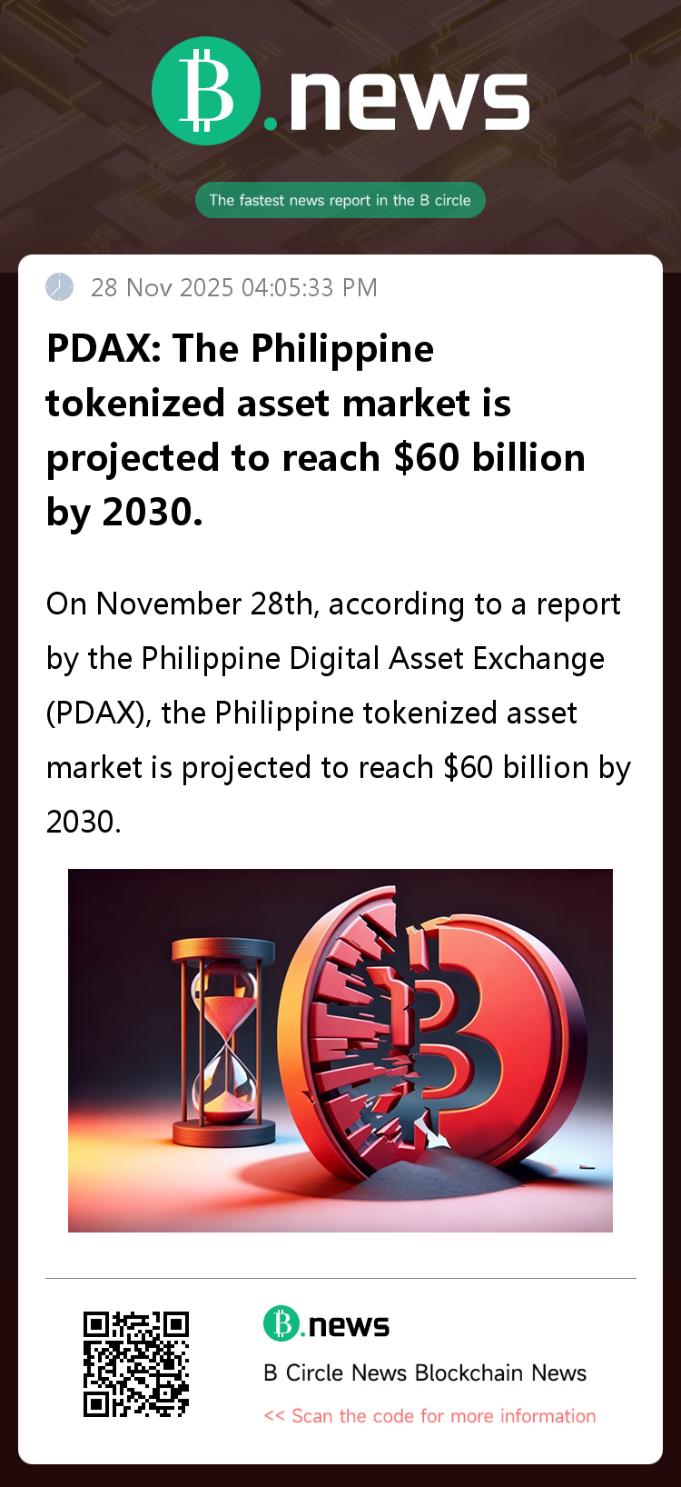 On November 28th, according to a report by the Philippine Digital Asset Exchange (PDAX), the Philippine tokenized asset market is projected to reach $60 billion by 2030.