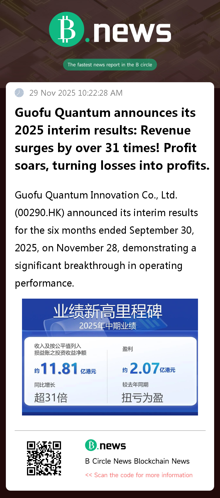 Guofu Quantum Innovation Co., Ltd. (00290.HK) announced its interim results for the six months ended September 30, 2025, on November 28, demonstrating a significant breakthrough in operating performance.
