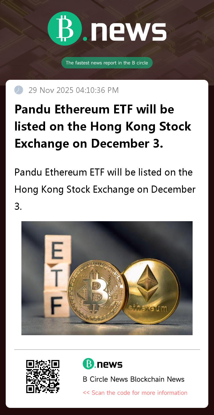 Pando, a licensed virtual asset management service company, officially announced that its Ethereum ETF will be listed on the Hong Kong Stock Exchange on December 3, with the stock code 3085.HK. The ETF directly holds Ethereum and is based on the CME Group CF Ethereum-USD Index (Asia-Pacific closing price). Hong Kong investors can use their existing securities accounts to trade by choosing cash or physical redemption. The trading unit is 100 shares, and the minimum subscription amount is HK$850.