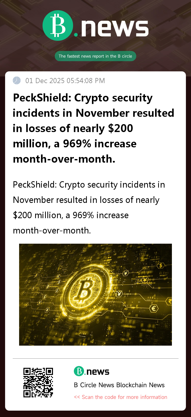 On December 1st, according to PeckShield, approximately 15 major cryptocurrency attacks occurred in November 2025, resulting in a total loss of approximately $194.27 million, a 969% surge compared to the $18.18 million in October. The five major attacks were: Balancer v2 and its fork, resulting in a loss of $137.4 million (of which $39 million has been recovered); Upbit, resulting in a loss of $36 million; Yearn Finance, resulting in a loss of $9 million; HLP, resulting in bad debts of $4.95 million; and GANA PayFi, resulting in a loss of $3.1 million.