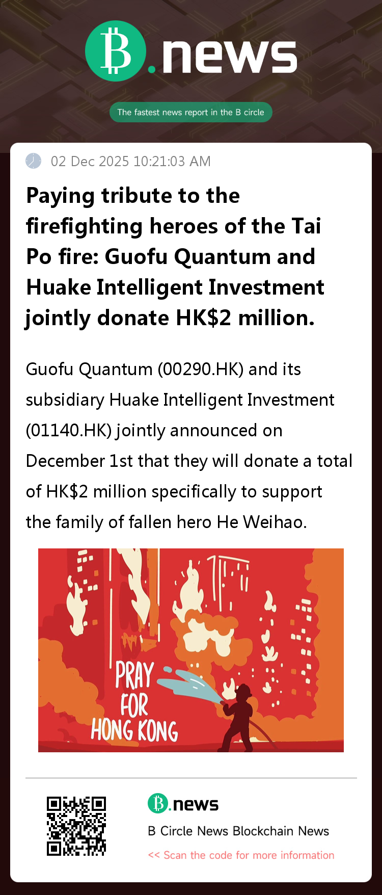 To express our highest respect and deepest concern for the Hong Kong firefighters who bravely fought and faced dangers during the Tai Po fire rescue, Guofu Quantum (00290.HK) and its subsidiary Huake Intelligent Investment (01140.HK) jointly announced on December 1st a donation of a total of HK$2 million.