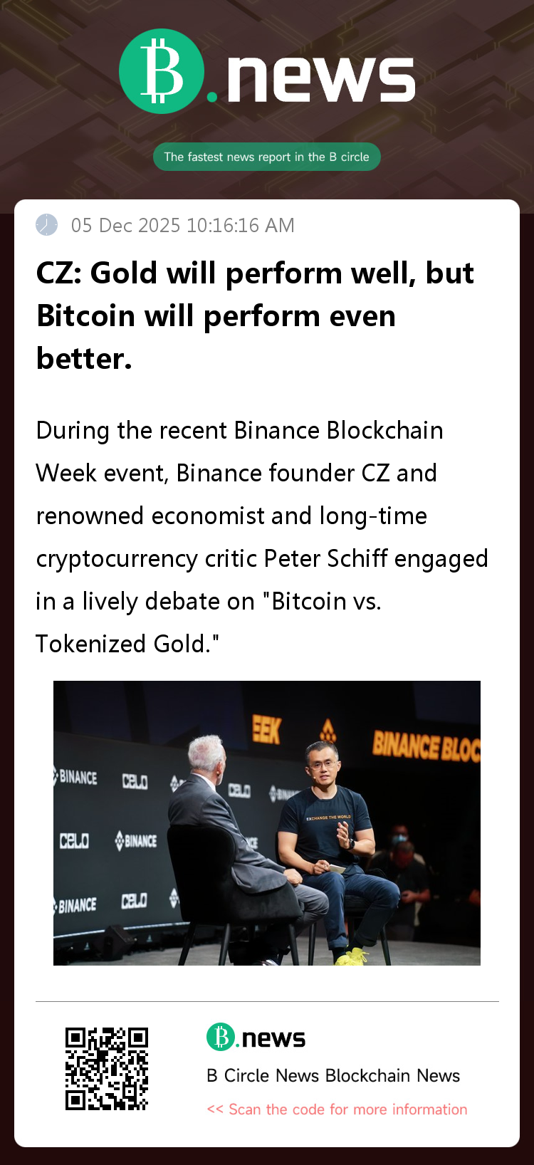 During the recent Binance Blockchain Week event, Binance founder CZ and renowned economist and long-time cryptocurrency critic Peter Schiff engaged in a lively debate on "Bitcoin vs. Tokenized Gold."