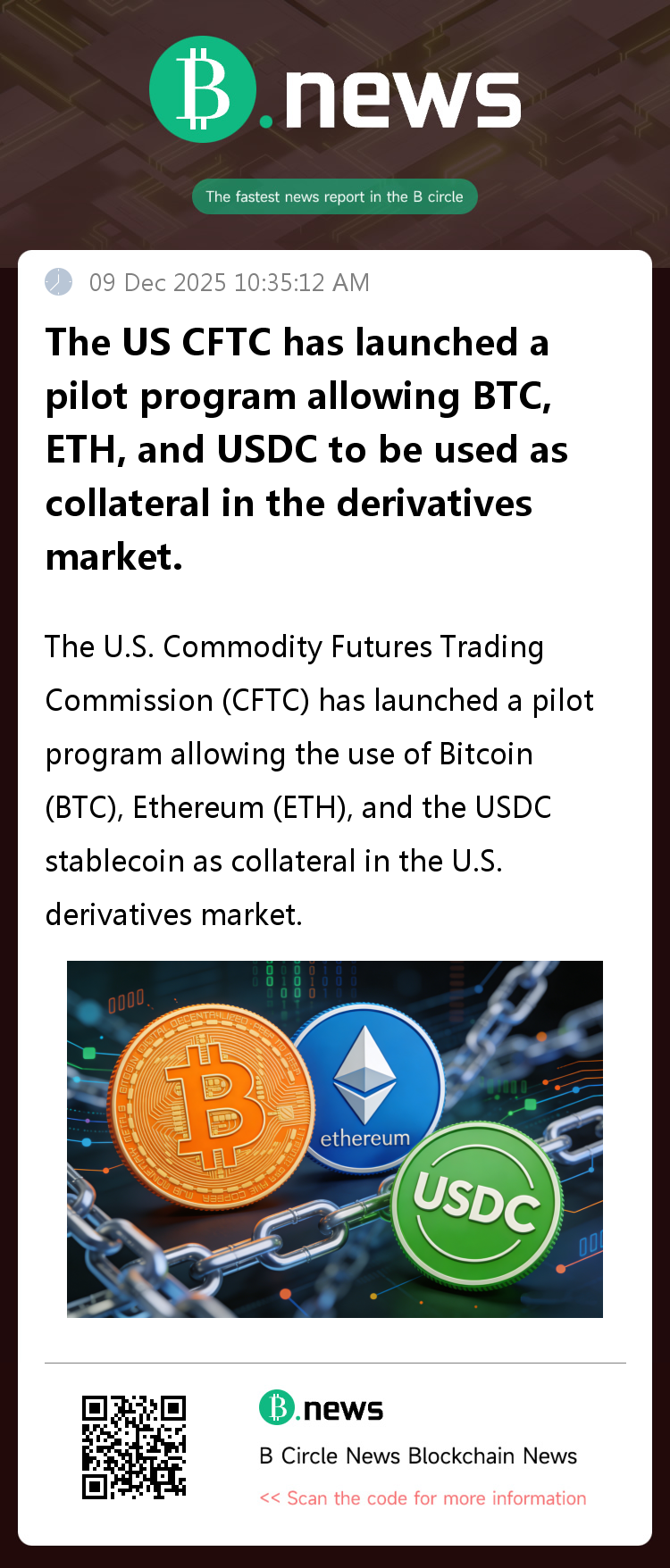 The U.S. Commodity Futures Trading Commission (CFTC) has launched a pilot program allowing the use of Bitcoin (BTC), Ethereum (ETH), and the USDC stablecoin as collateral in the U.S. derivatives market. The program is open to approved futures commission brokers and includes stringent custody, reporting, and regulatory requirements. The agency has also updated its guidance on tokenized assets under the GENIUS Act and removed outdated restrictions.