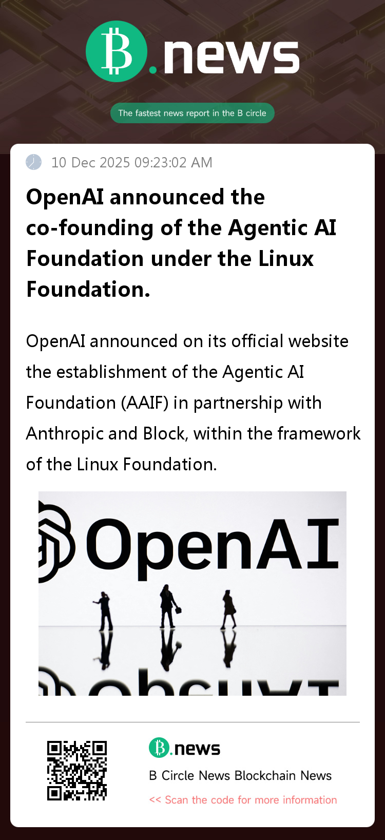 OpenAI announced on its official website the establishment of the Agentic AI Foundation (AAIF) in partnership with Anthropic and Block, within the framework of the Linux Foundation.