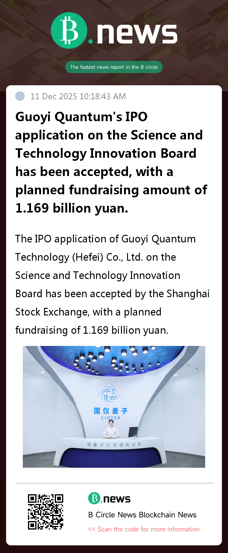 On December 10th, the Shanghai Stock Exchange accepted the IPO application of Guoyi Quantum Technology (Hefei) Co., Ltd. for listing on the Science and Technology Innovation Board, with a planned fundraising of 1.169 billion yuan. Huatai United Securities is the sponsor.