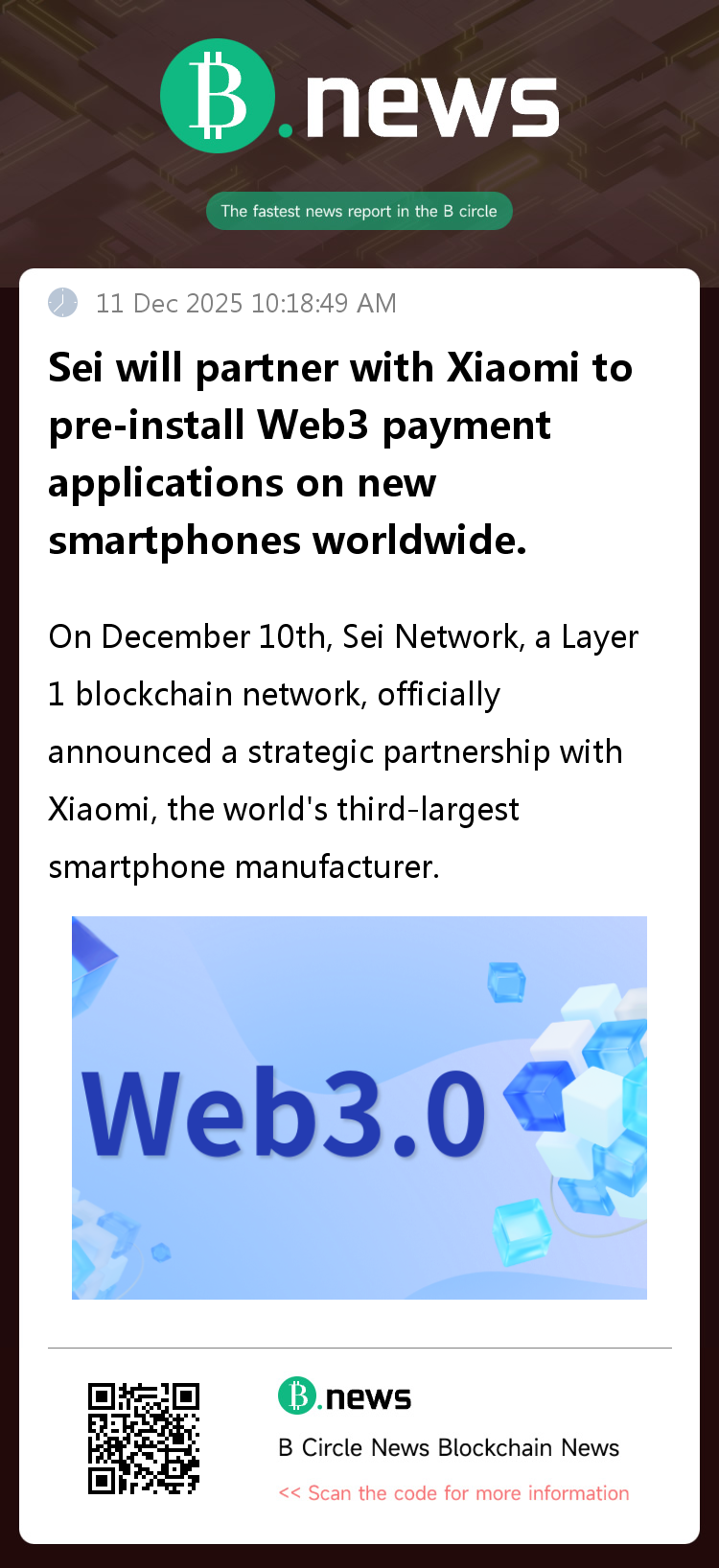 On December 10th, Sei Network, a Layer 1 blockchain network, officially announced a strategic partnership with Xiaomi, the world's third-largest smartphone manufacturer.