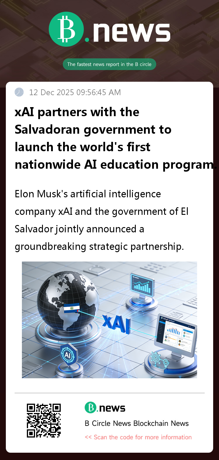 over the next two years, xAI's advanced AI model, Grok, will be systematically deployed in more than 5,000 public schools across El Salvador, expected to reach over 1 million students and thousands of teachers, jointly building the world's first national AI-assisted education system.