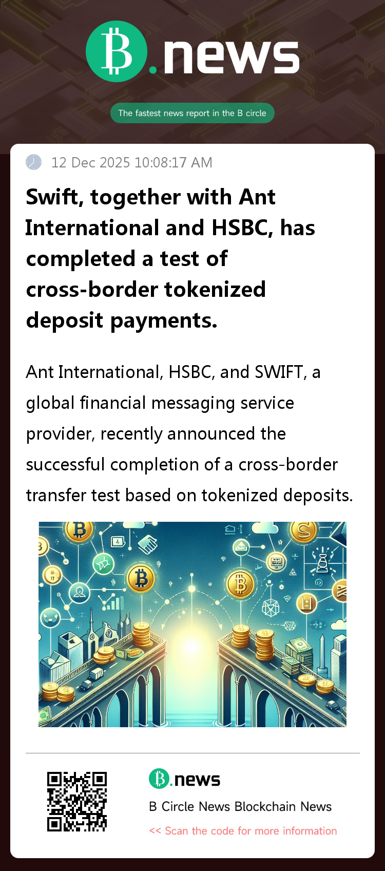 Ant International, HSBC, and SWIFT, a global financial messaging service provider, recently announced the successful completion of a cross-border transfer test based on tokenized deposits.