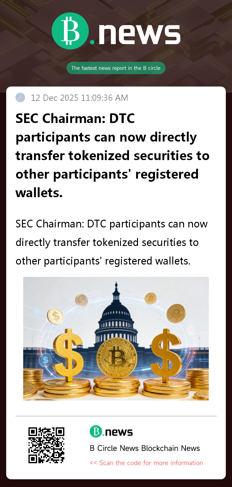 Paul Atkins, Chairman of the U.S. Securities and Exchange Commission (SEC), stated in an article published on the X platform that the U.S. financial market is about to transition to on-chain and will prioritize innovation and actively adopt new technologies. The SEC has sent a letter to the American Depository Trust & Clearing Corporation (DTC) stating that no action will be taken. On-chain markets will bring investors greater predictability, transparency, and efficiency. Now, DTC participants can directly transfer tokenized securities to the registered wallets of other participants, and these transactions will be officially recorded and tracked by the DTC.
