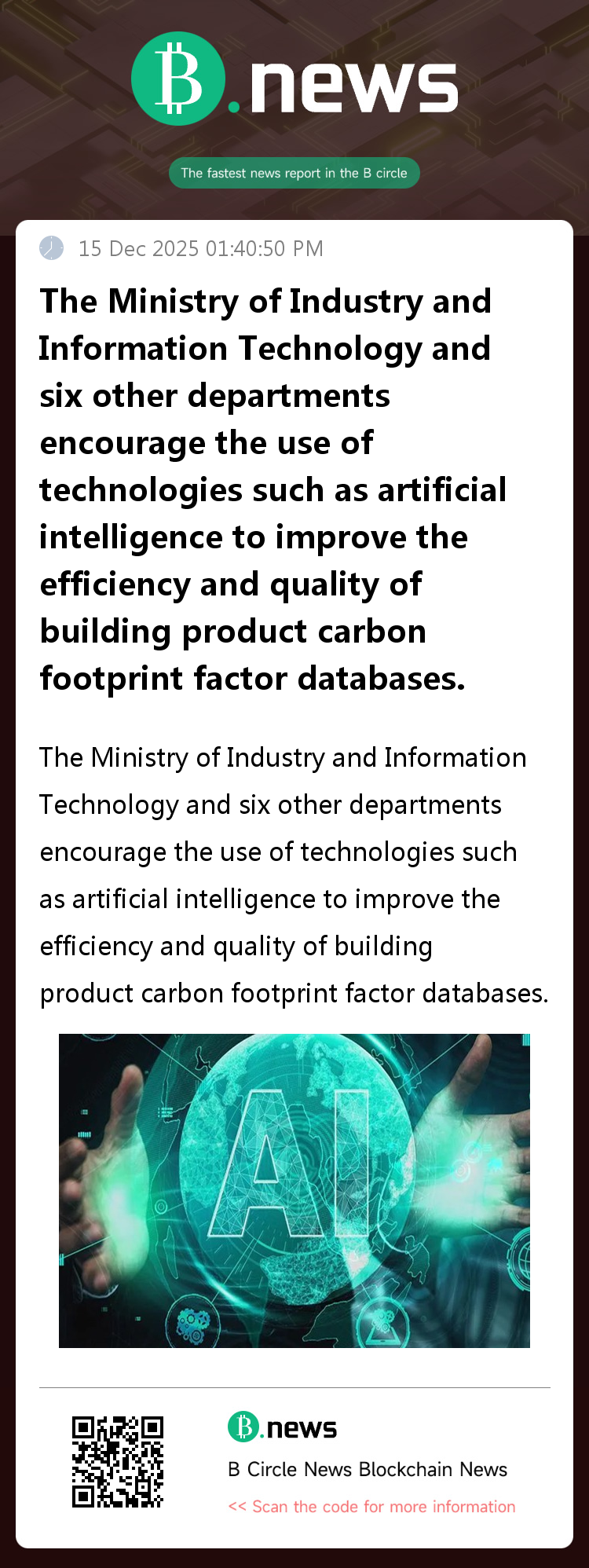 Cailian Press, December 15th – The Ministry of Industry and Information Technology and seven other departments issued the "Guidelines for the Construction of Product Carbon Footprint Factor Databases." The guidelines emphasize the application of cutting-edge technologies, encouraging the use of artificial intelligence and other technologies to improve the efficiency and quality of product carbon footprint factor database construction, and to enhance the representativeness and reliability of carbon footprint factor data. They also explore the application scenarios of solutions such as trusted data spaces in the construction of product carbon footprint factor databases, and encourage pilot projects. (Source: Cailian Press)