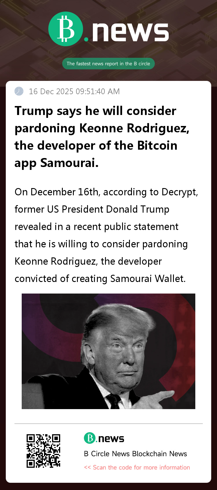 It remains unclear whether Trump will formally initiate pardon proceedings, but his public response has brought the case into the public eye and may spark a new round of discussions about the boundaries of technology, privacy, and the law. (Source: BLOCKBEATS)