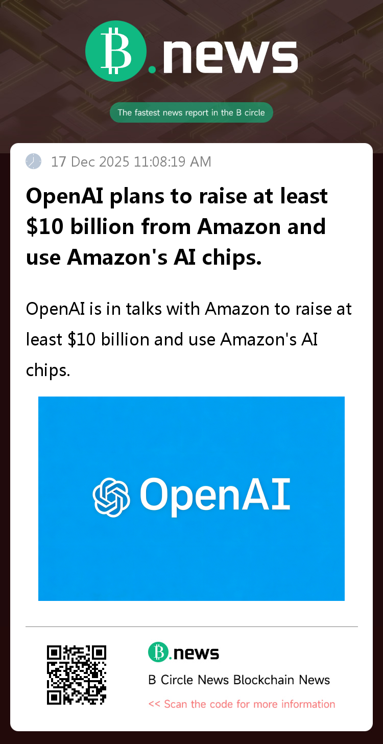 According to The Information: OpenAI is in talks with Amazon to raise at least $10 billion and use Amazon's AI chips. (Source: Jinshi)