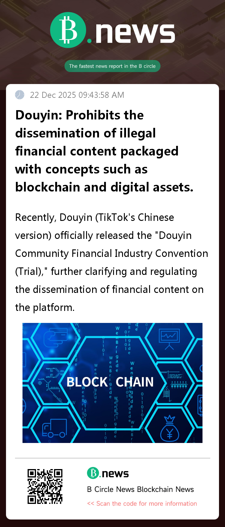 This convention aims to prevent new financial risks, protect users' assets, and maintain a healthy and positive community environment. Douyin reiterated its commitment to continuously combating any attempts to use new technologies as a pretext for illegal advertising or misleading users into participating in illegal financial activities related to virtual currencies, and to jointly promote the compliant and professional development of financial content dissemination.