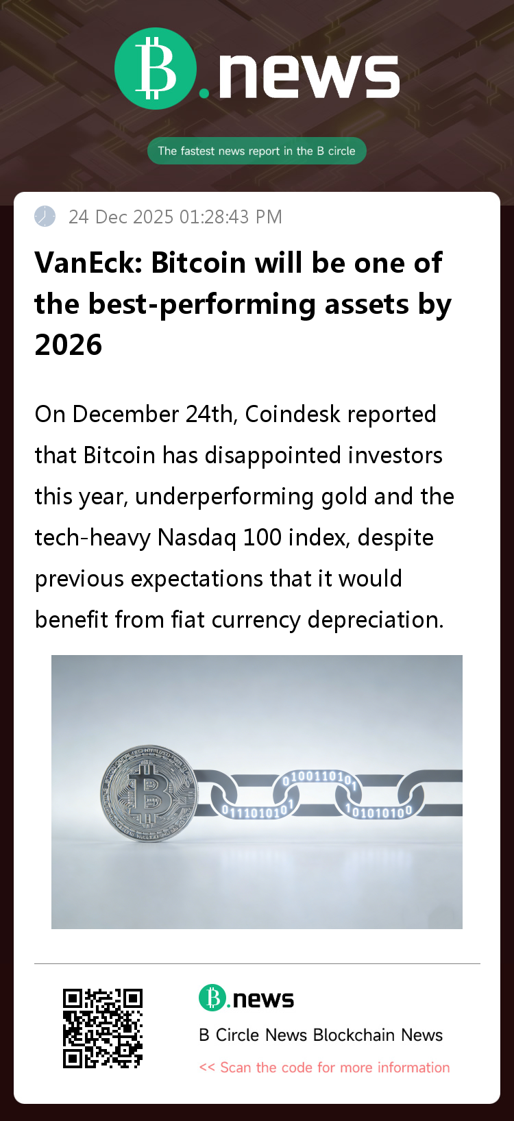 David Schassler, head of multi-asset solutions at VanEck, stated in the company's recent 2026 outlook: "Bitcoin's year-to-date performance has lagged the Nasdaq 100 by about 50%, and this misalignment puts it on track to be one of the best-performing assets in 2026."