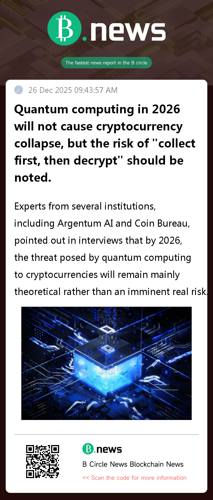 Recently, experts from several institutions, including Argentum AI and Coin Bureau, pointed out in interviews that by 2026, the threat posed by quantum computing to cryptocurrencies will remain primarily theoretical rather than an imminent real-world risk.