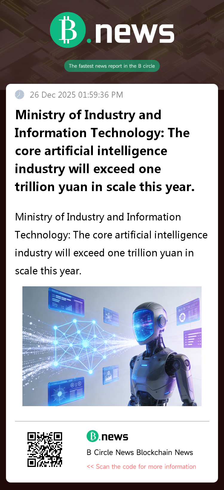 Cailian Press, December 26th – According to the National Conference on Industry and Information Technology, my country's industrial and technological innovation will achieve new breakthroughs by 2025, with the core artificial intelligence industry exceeding one trillion yuan in scale. The Ministry of Industry and Information Technology, in outlining its key tasks for 2026, proposed cultivating and strengthening emerging and future industries, and supporting research and development in artificial intelligence. (Xinhua)