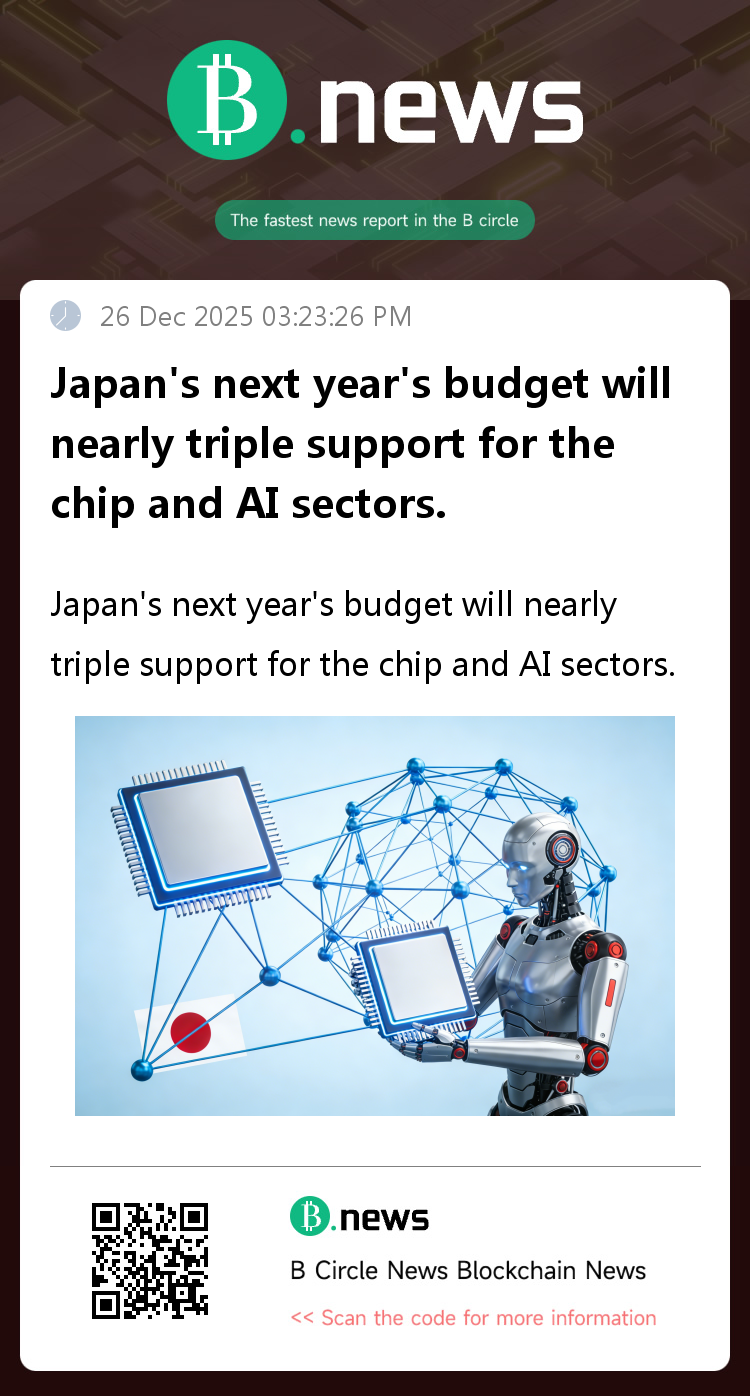(Cailian Press, December 26) Starting next April, Japan's Ministry of Economy, Trade and Industry (METI) is poised to nearly triple its budget support for the development of advanced semiconductors and artificial intelligence (AI), reaching approximately 1.23 trillion yen (US$7.9 billion). METI's overall budget will increase by about 50% year-on-year to 3.07 trillion yen, primarily due to a significant increase in spending on chips and AI.