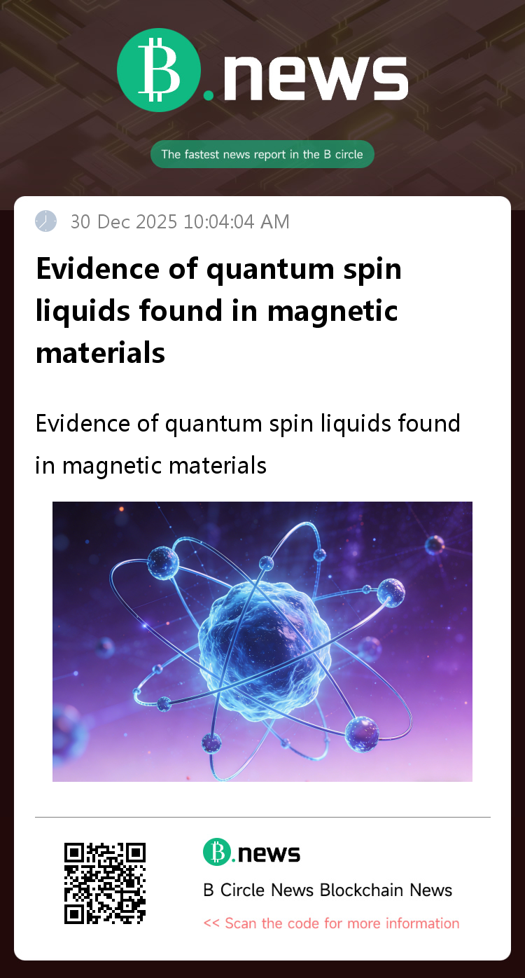 Cailian Press, December 30th – According to the latest issue of *Nature Physics*, a research team from the SLAC National Accelerator Laboratory and Stanford University has discovered strong evidence for the existence of intrinsic quantum spin liquids (QSLs) in a novel magnetic cage-like material. This provides crucial evidence for understanding the fundamental principles of quantum spin liquids and promoting their application in quantum technologies. (Source: Cailian Press)