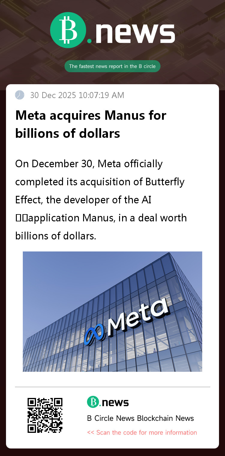 On December 30th, according to LatePost, Meta officially completed its acquisition of Butterfly Effect, the developer of the AI application Manus, in a deal worth billions of dollars. This acquisition is Meta's third-largest transaction since its inception, second only to its previous acquisitions of WhatsApp and ScaleAI, marking another key move in Meta's artificial intelligence strategy.